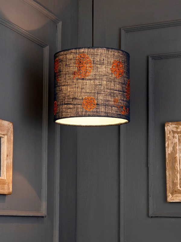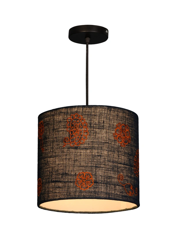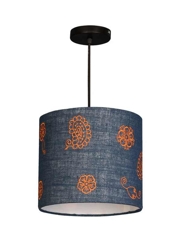Embroided Jute Hanging lamp shade creating a soothing environment around you. It emits not only light but happiness around you. Accomapnied by a set of canopy and hanging wire.