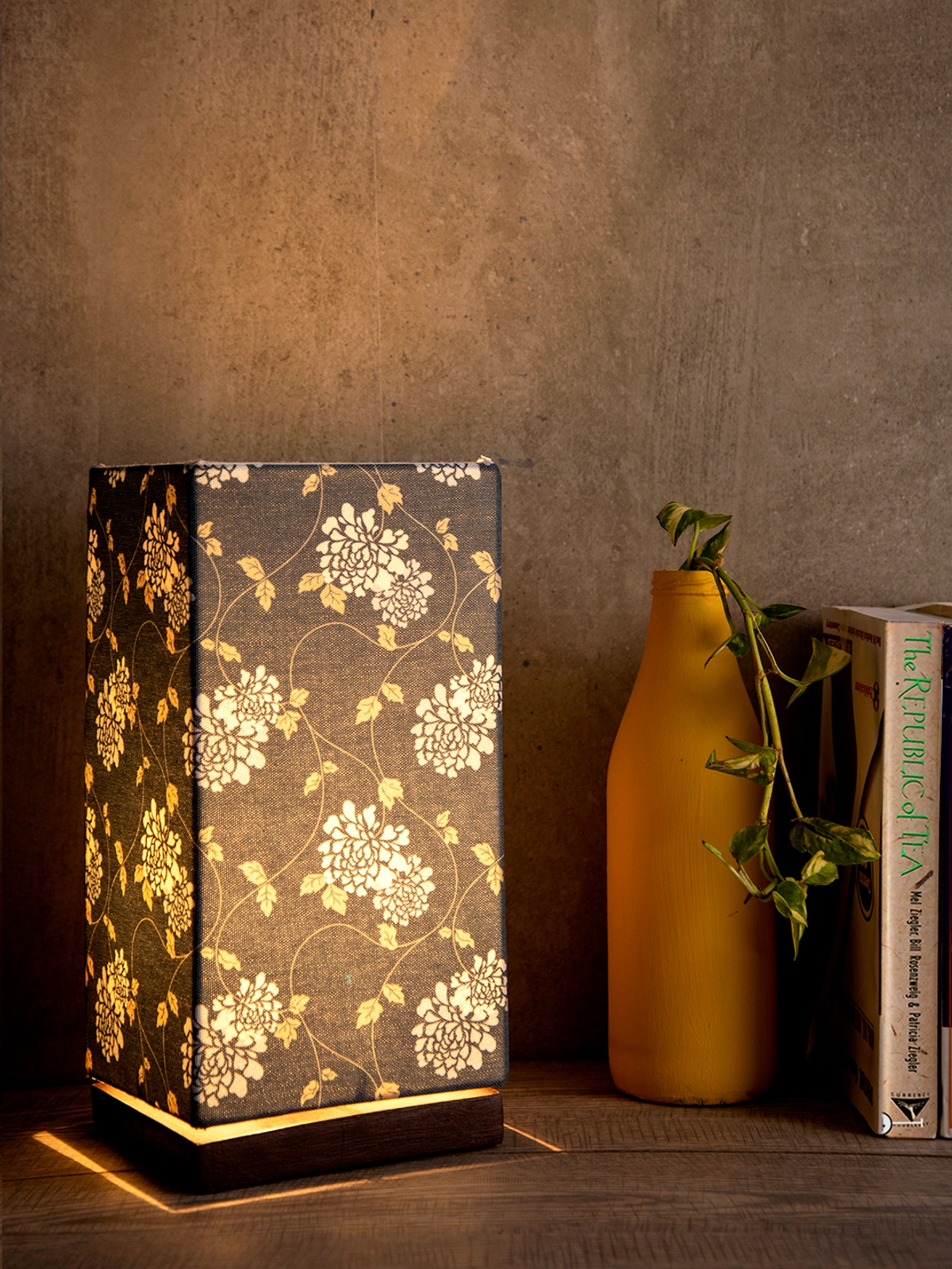 Golden Leaves Lamp with Wooden Base - Illuminate Your Space with Nature's Elegance