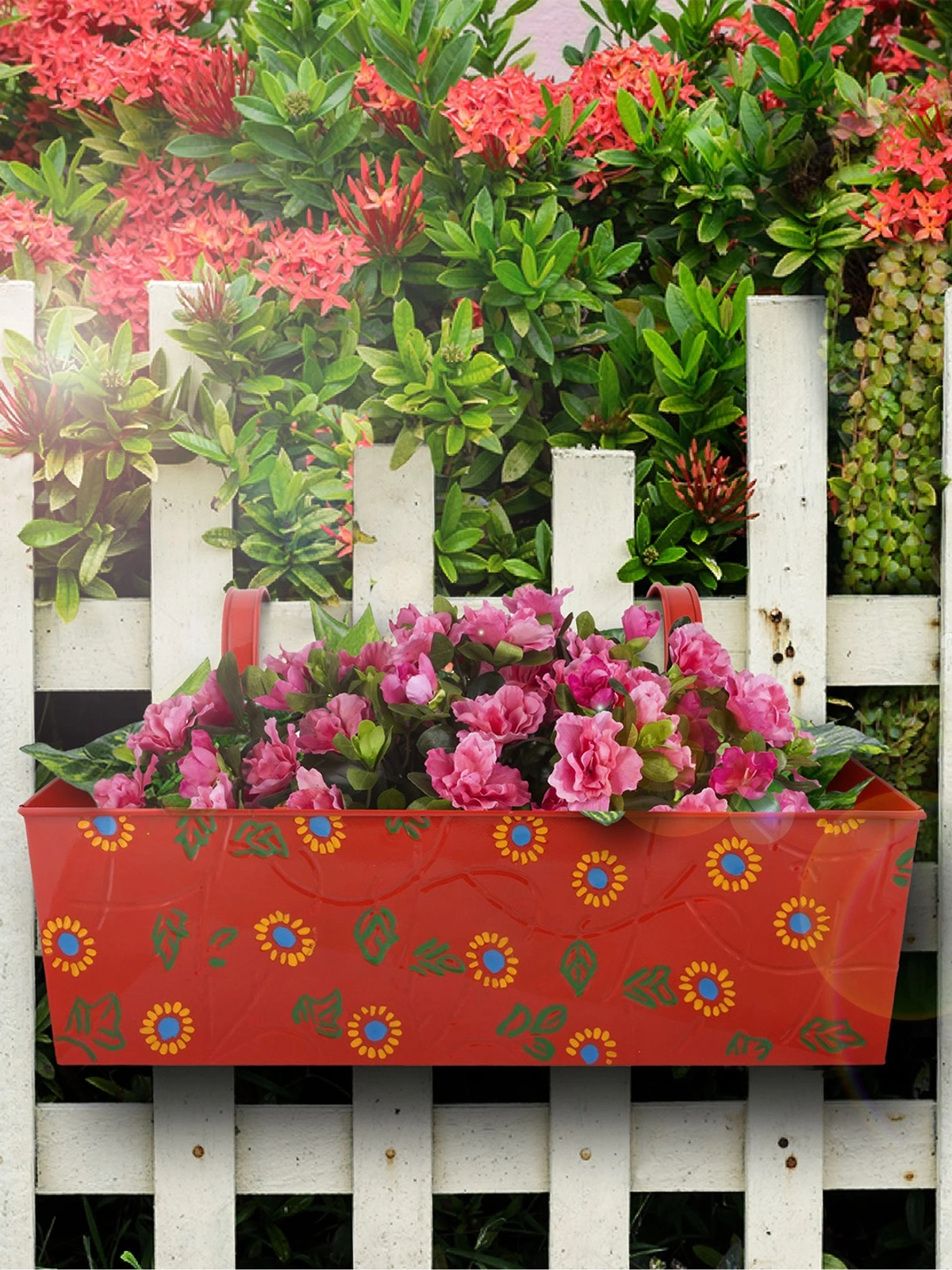Handpainted Rectangle Planter Red – Add a Splash of Art to Your Greens