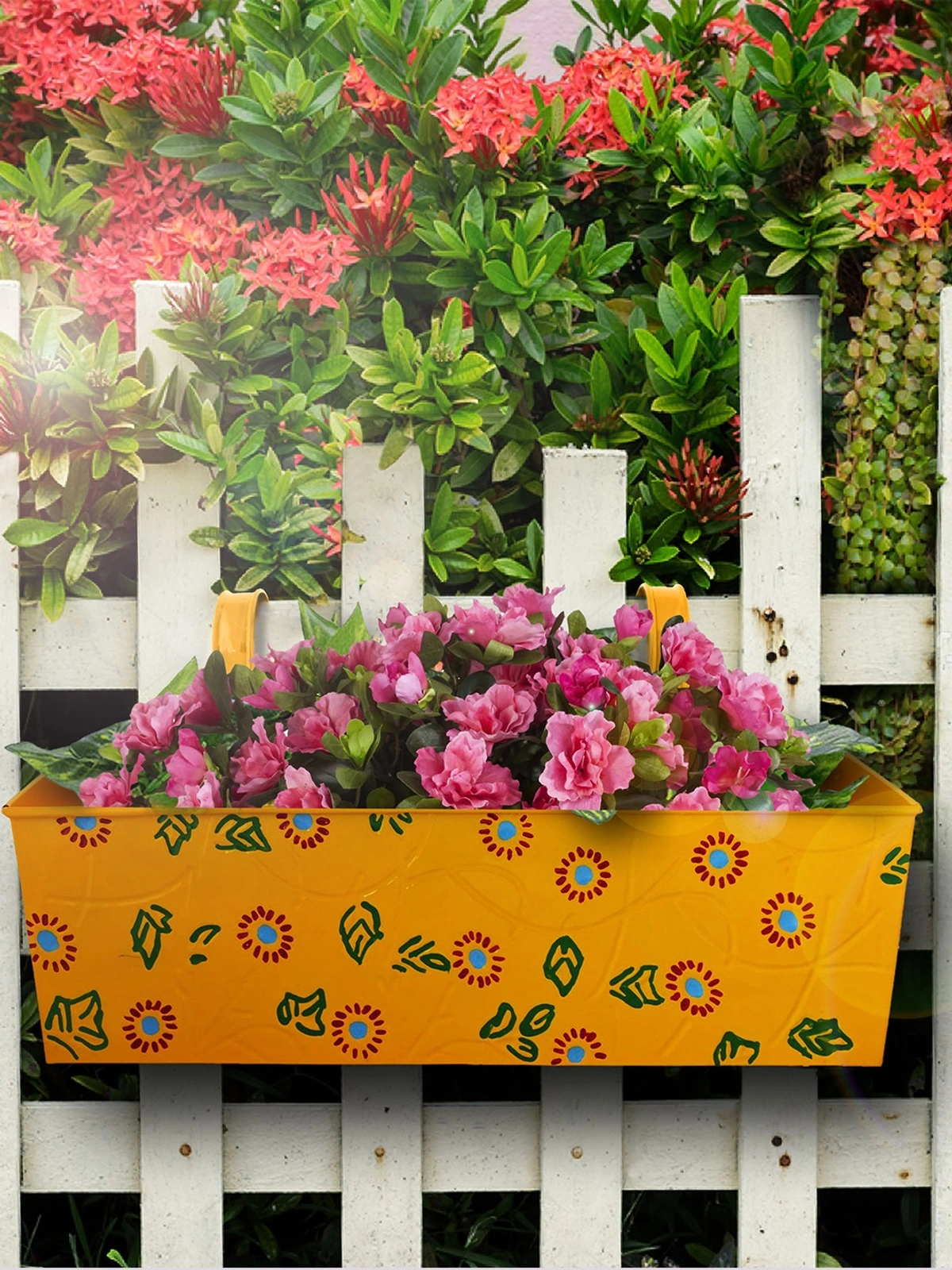 Brighten Your Space with the Handpainted Rectangle Planter - Yellow