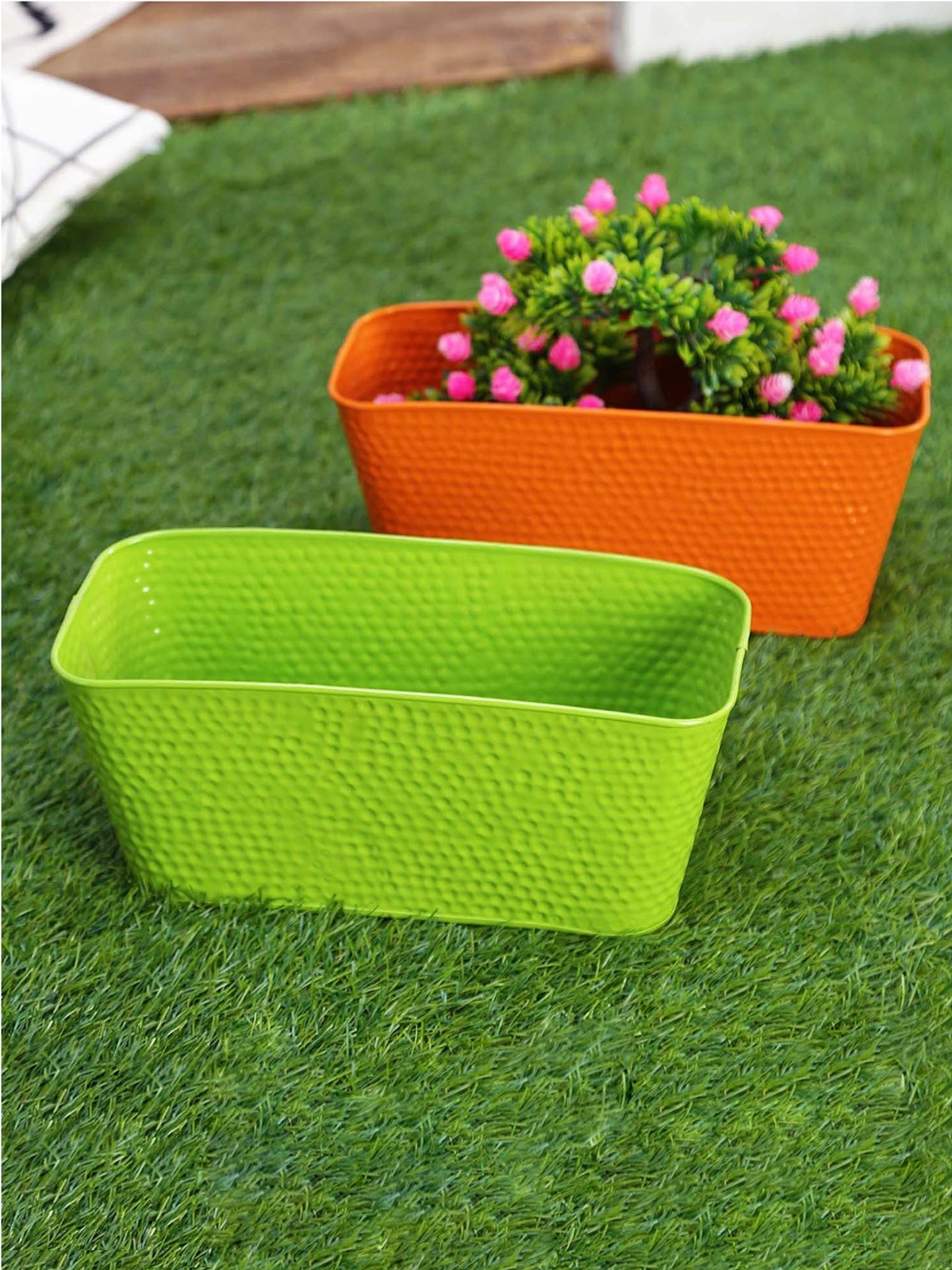 Bring a splash of color and charm to your home or garden with the Set of Two 12'' Embossed Pots from Little Croco. Perfectly blending style and functionality, these stunning pots in vibrant green and orange hues are designed to elevate any space while offering exceptional durability. Whether you're nurturing your favorite plants or adding a decorative accent, these pots are sure to impress.