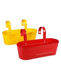 Set of two Oval Railing Planter Large Yellow & Red